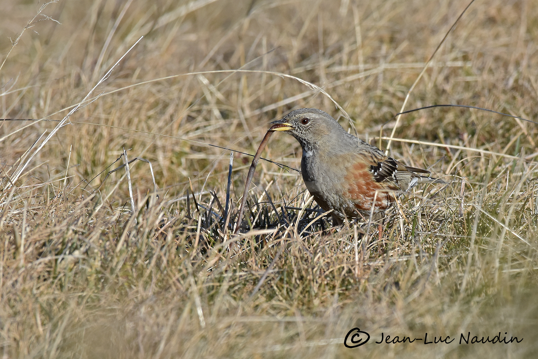 Un accenteur vient capturer un lombric, première fois que j’observe cette scène.