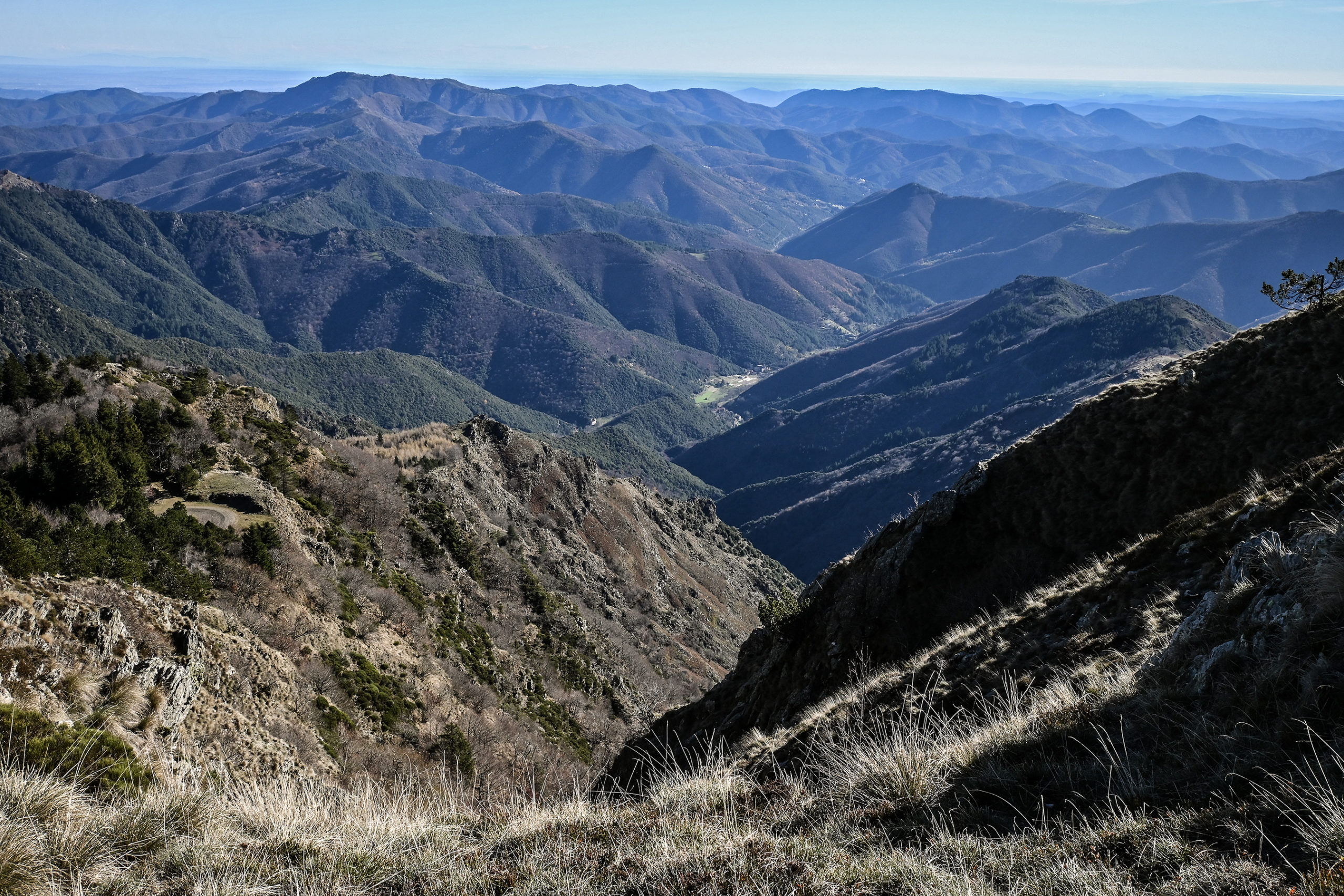 Un nouveau panorama s’ouvre devant nous, la Combe rude. Les Cévennes dans toutes leurs splendeurs : succession de crêtes, de combes, de vallées où les routes ne connaissent pas la ligne droite ! Pas facile de rencontrer les voisins qui habitent de l’autre côté des sommets. On comprend la vie en autarcie des habitants des vallées cévenoles aux siècles passés.