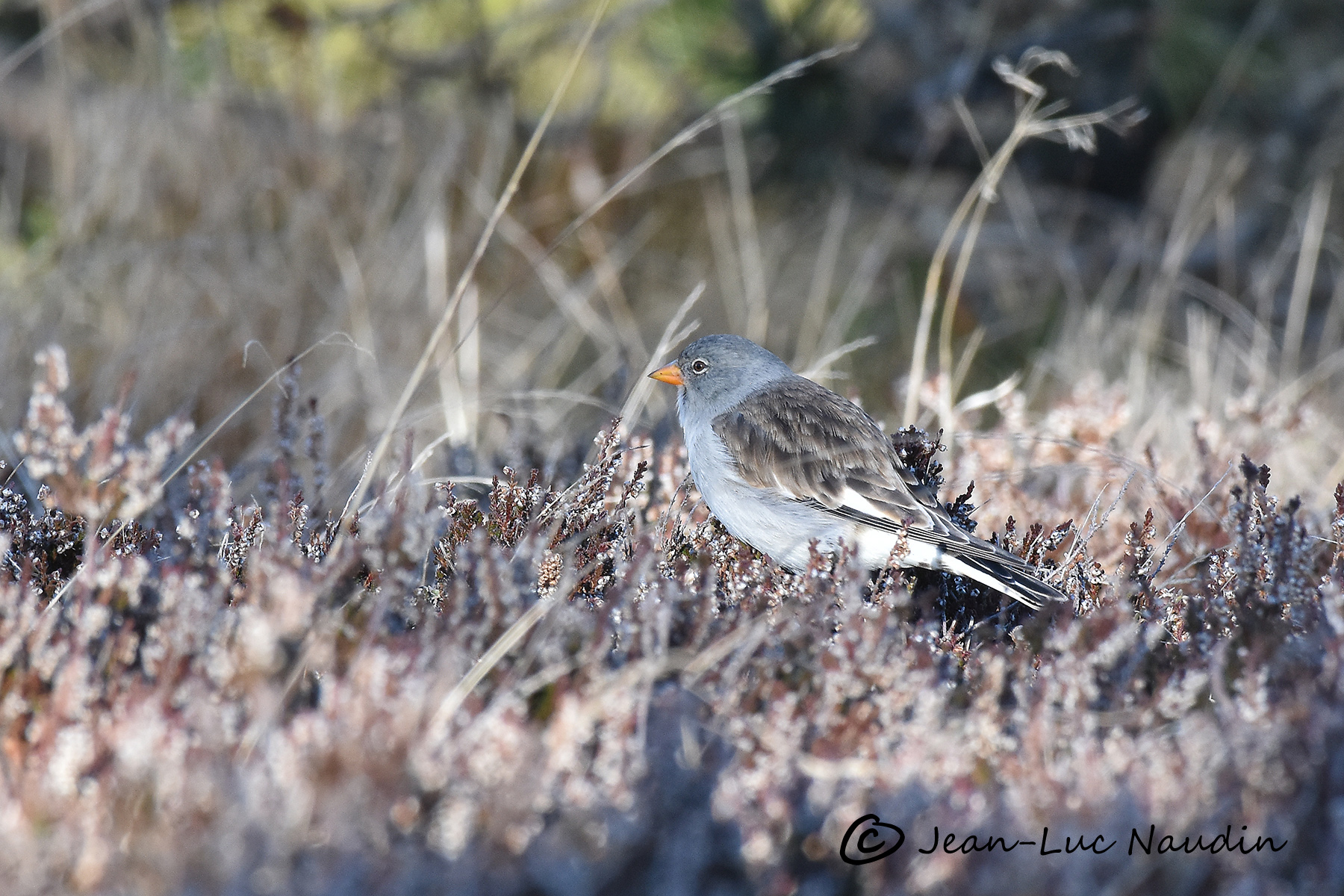 Une niverolle sort de la bruyère.