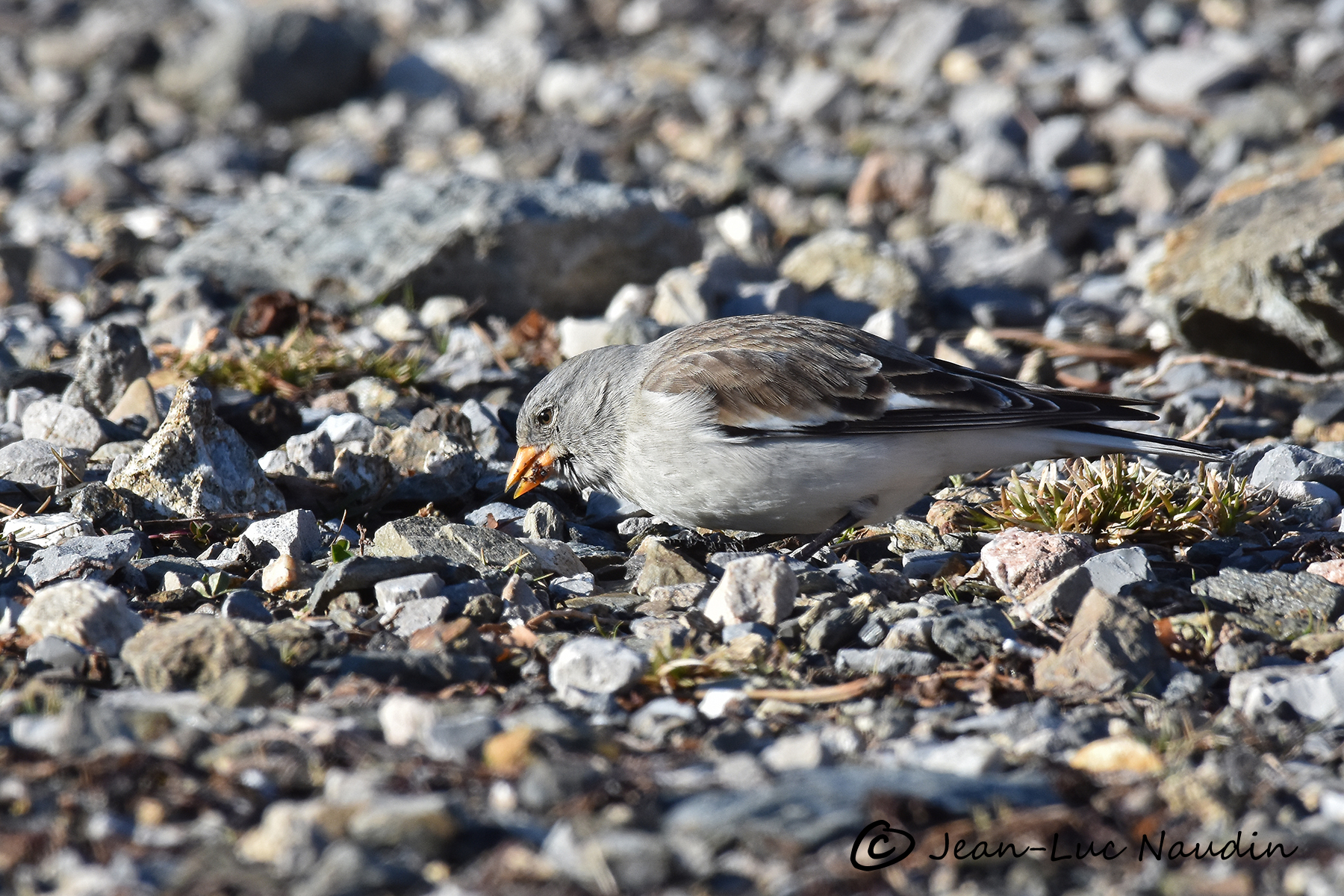 A peine sortie de la voiture, Cécile aperçoit des passereaux en vol avec beaucoup de blanc sur les ailes, sûrement des Niverolles alpines (c’est leur vrai nom) mais elles disparaissent.