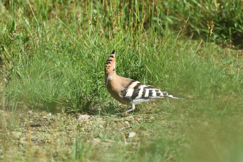 La Huppe fasciée n’est jamais bien loin et son chant retentit à chaque fois autour de la lavogne. Lors de mon premier affût, j’ai fait décoller une famille cachée par les hautes herbes devant moi. Malheureusement ce magnifique oiseau était souvent trop loin ou à moitié dissimulé par la végétation ou sur le côté de l’affût.
