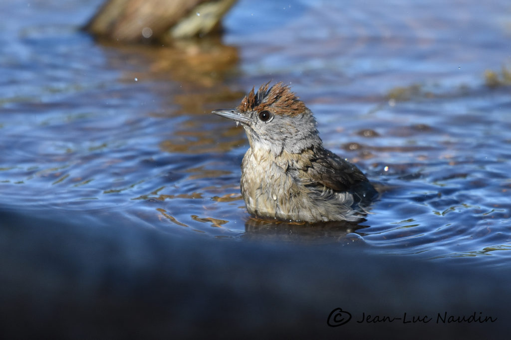 Bien que très présentes autour de ce point d’eau, les Fauvettes à tête noire ne se laissent pas voir facilement. Elles se baignent et boivent dans les joncs bien cachées de mon œil de voyeur.