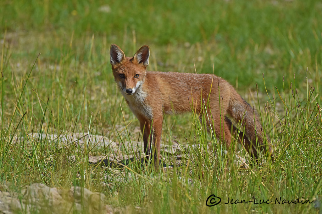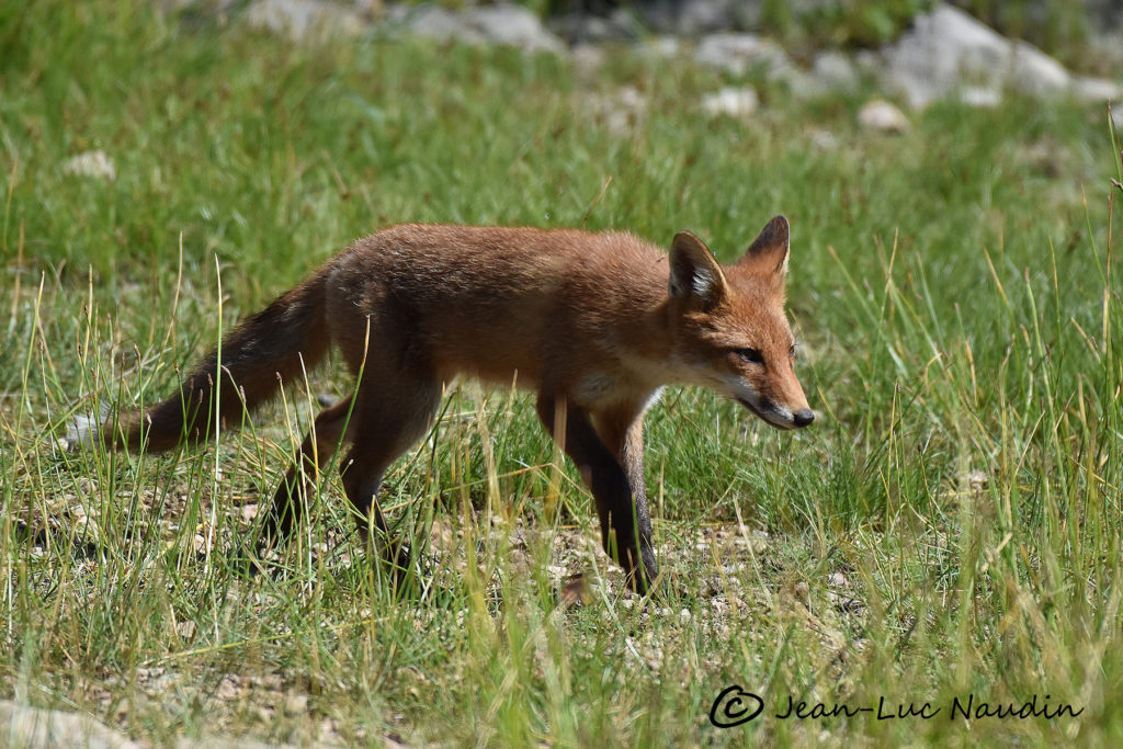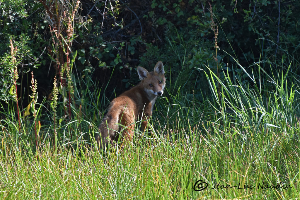 Goupil a l’oreille fine et regarde vite dans ma direction. Comme j’utilise un appareil reflex, le bruit du miroir qui se relève et l’obturateur éveillent sa vigilance et l’intriguent.