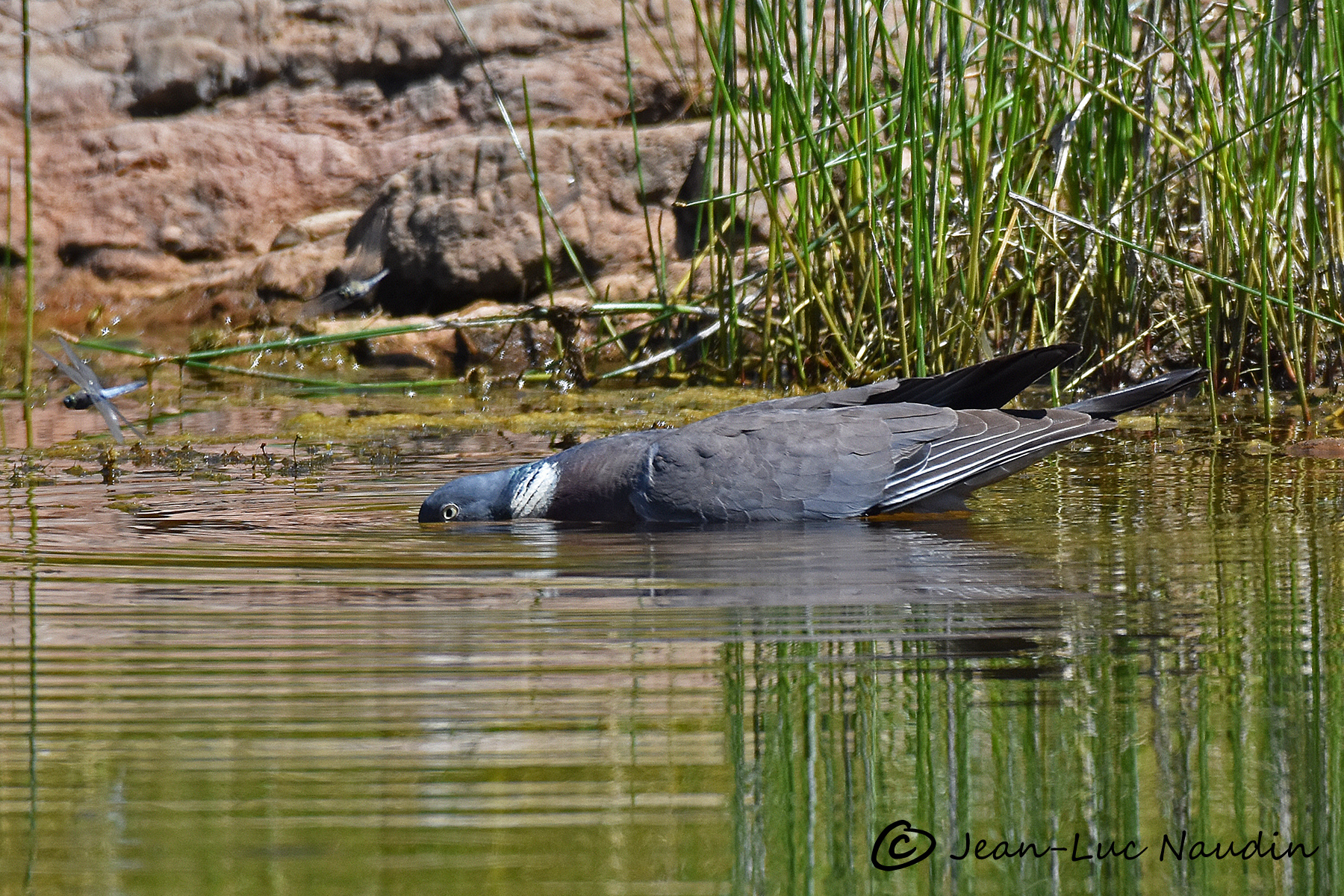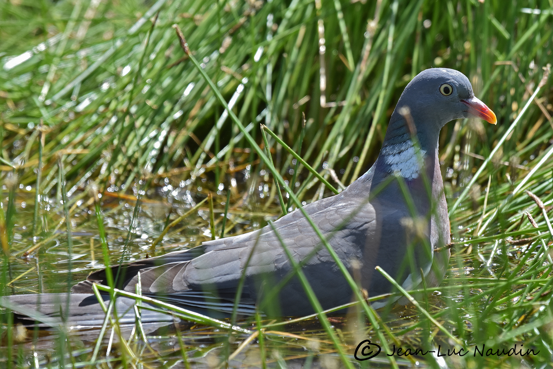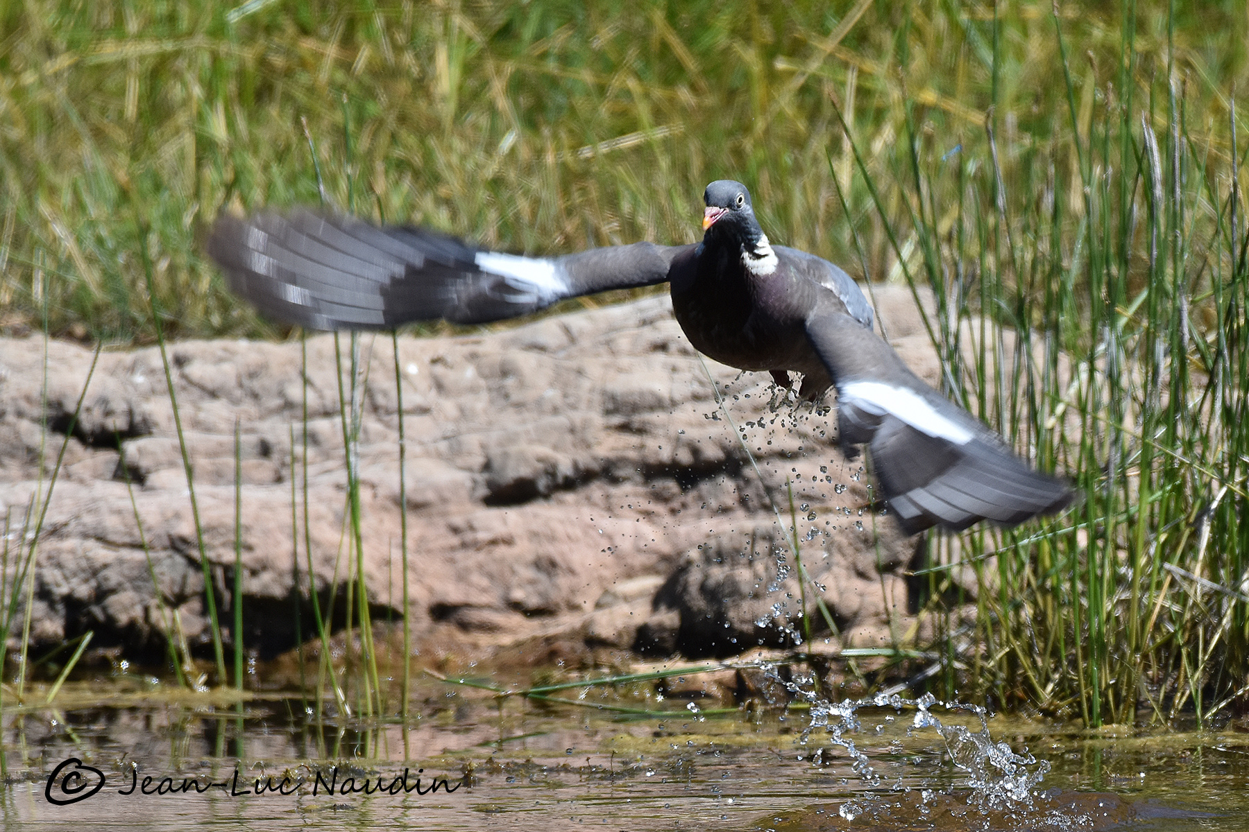 Les Pigeons ramiers sont très méfiants même sans voir l’objectif. Beaucoup restent perchés sur les arbres entourant la lavogne et attendent un long moment avant de descendre à l’eau.