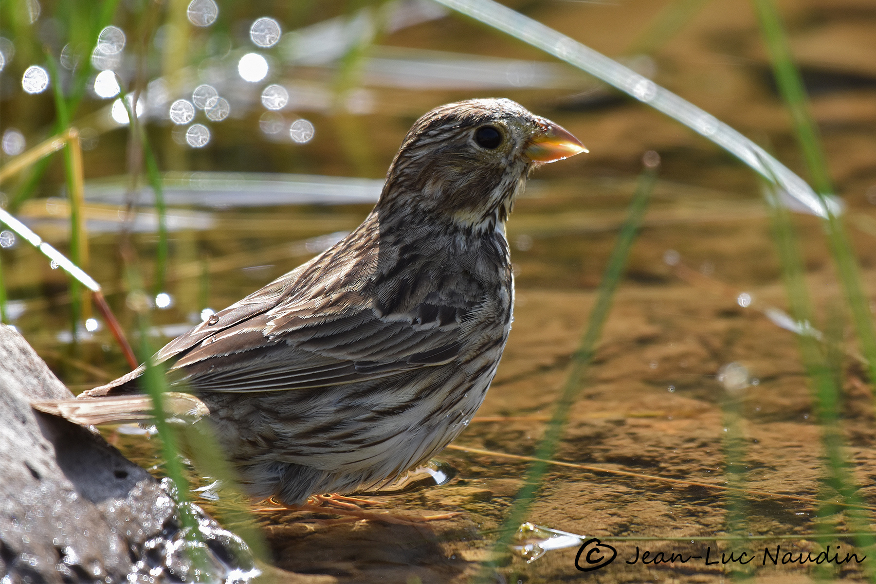 Nous avons déjà vu dans l’article précédent les Bruants zizi et jaune, voici le Bruant proyer. Son plumage est beaucoup plus terne que ses « cousins ». Ce sont des visiteurs assez nombreux mais leur effectif a diminué dès le mois de juillet.