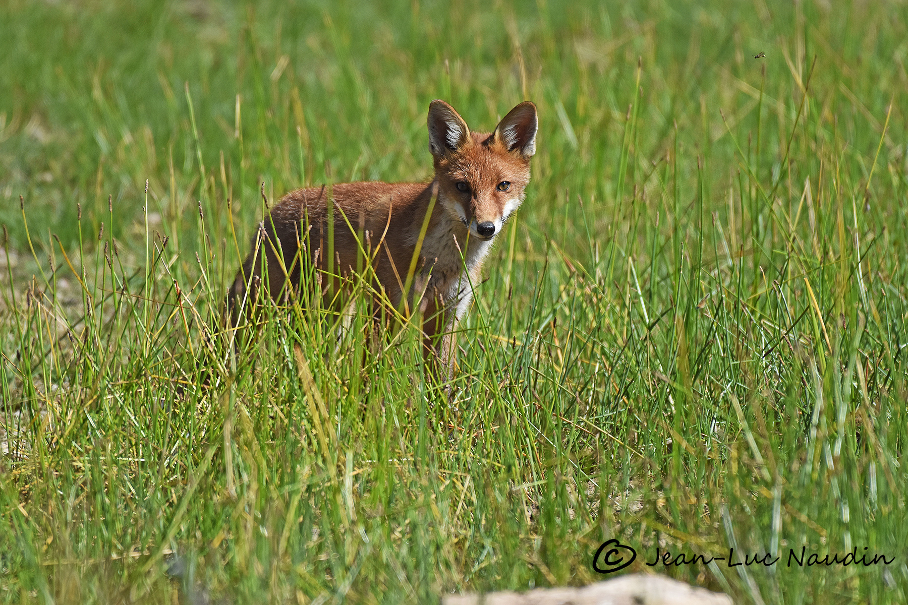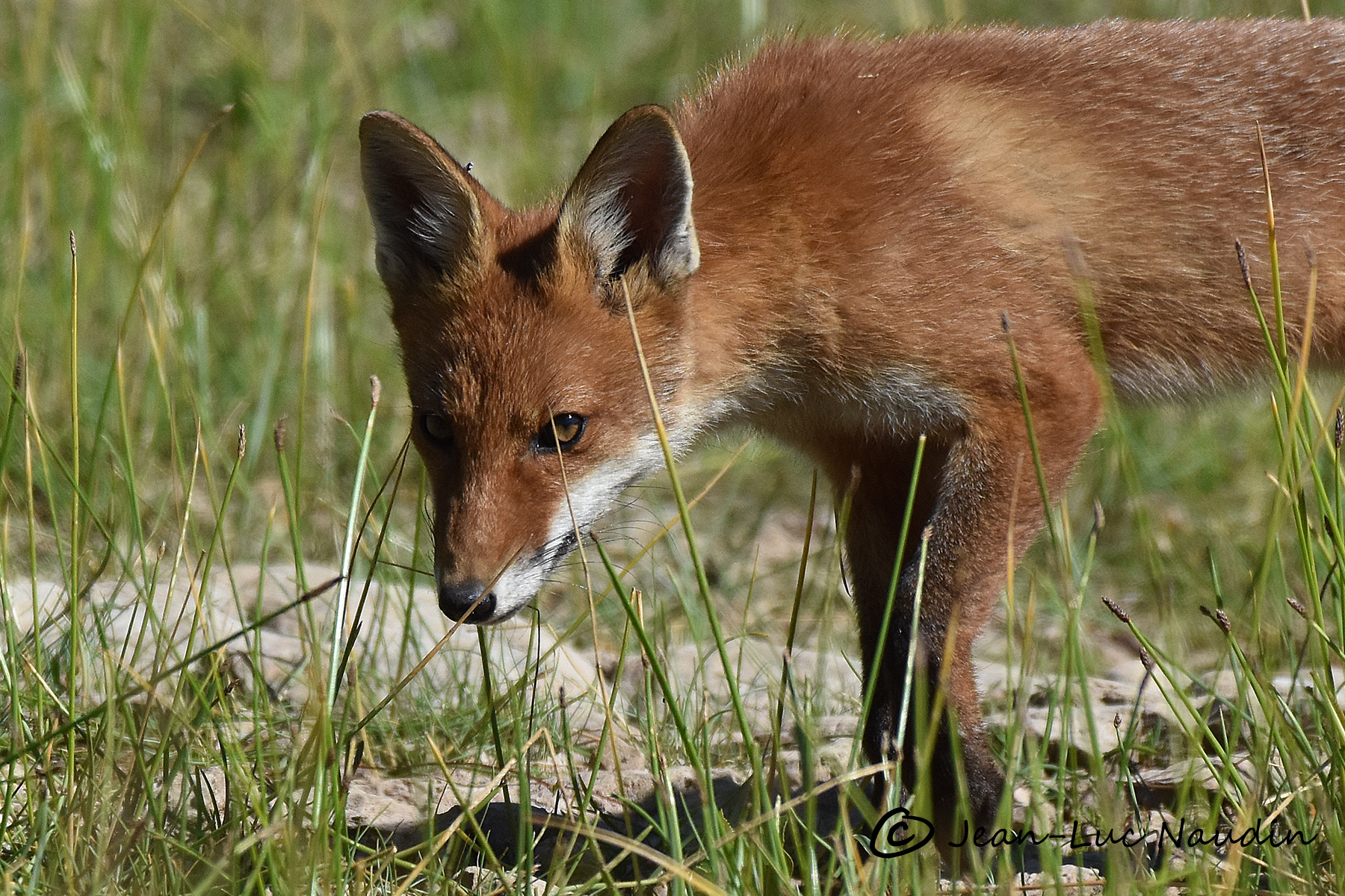 Goupil a l’oreille fine et regarde vite dans ma direction. Comme j’utilise un appareil reflex, le bruit du miroir qui se relève et l’obturateur éveillent sa vigilance et l’intriguent.